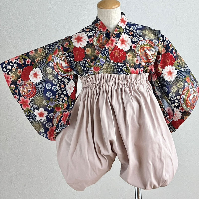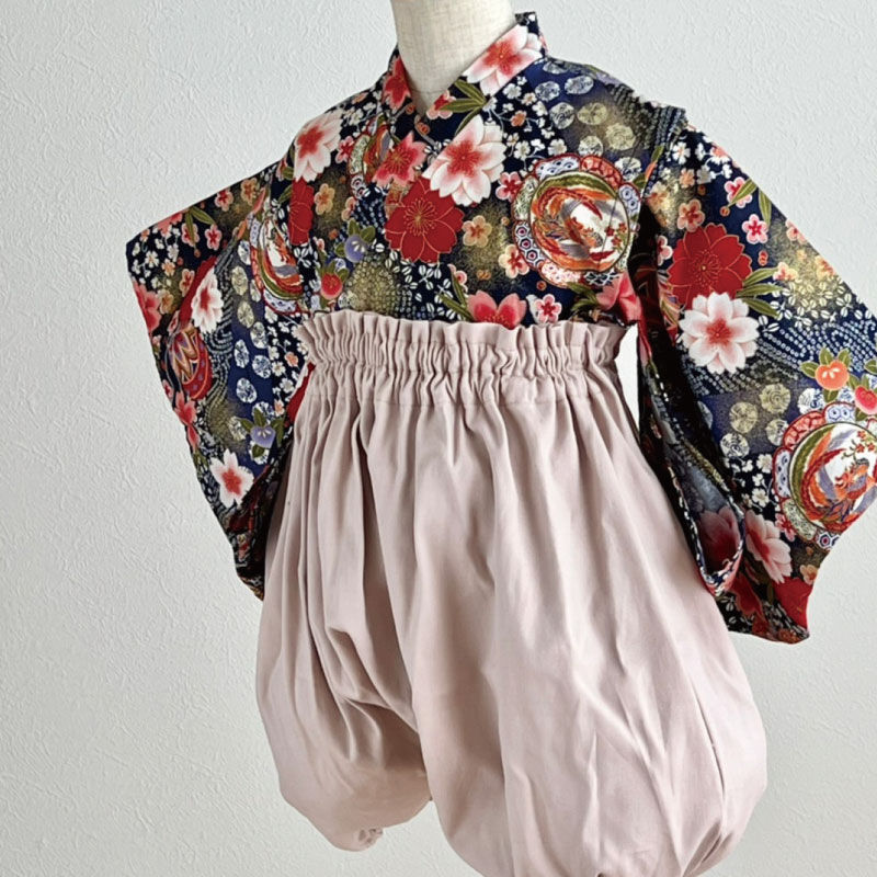 【ベビー袴 】和柄花柄 × 袴 くすみピンク