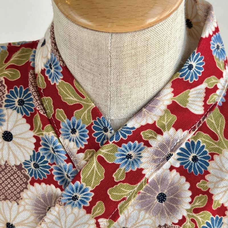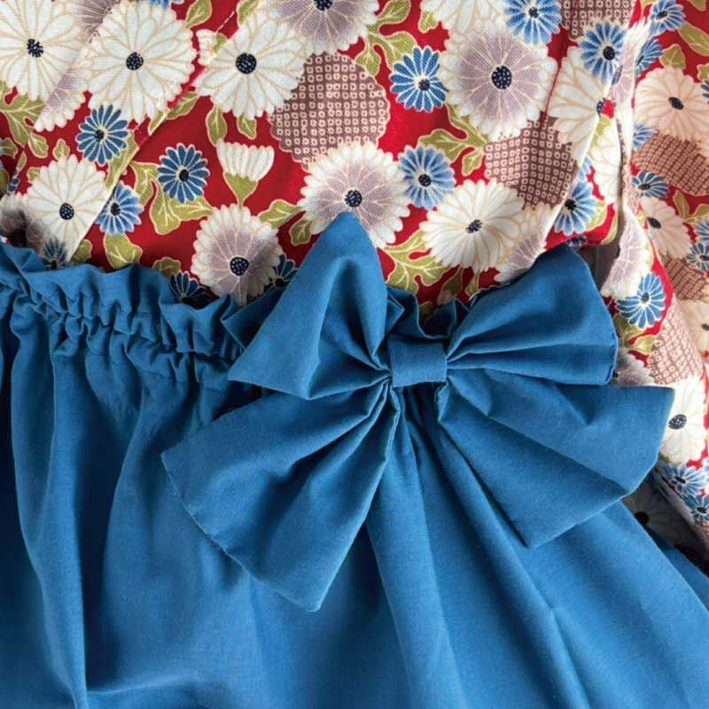 【ベビー袴 】和柄⾚菊 × 袴 ⻘・袴リボン